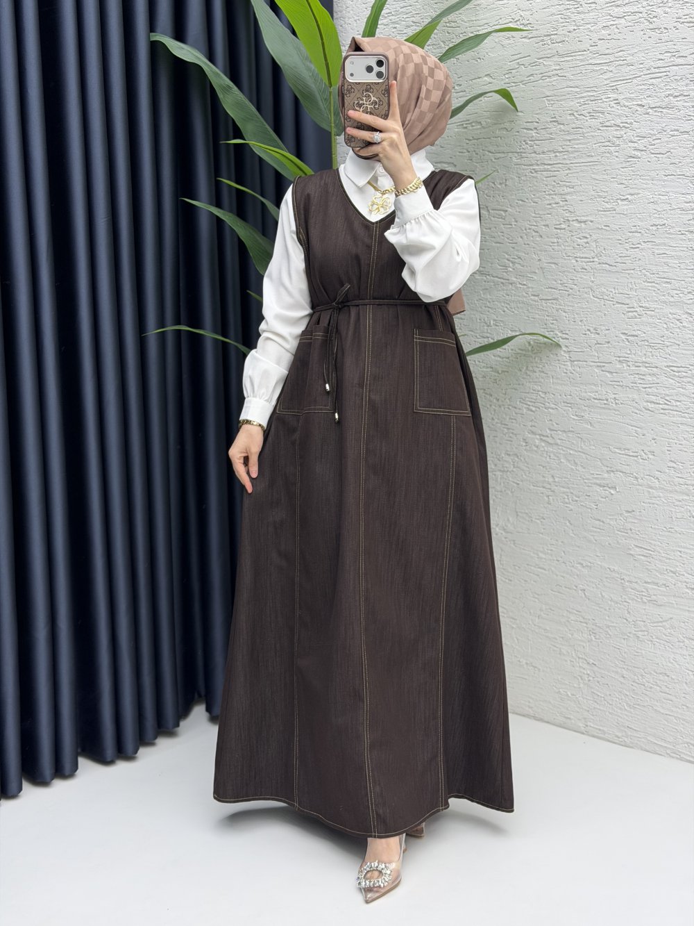 Afize Kot Jile Tesettür Giyim Kahve