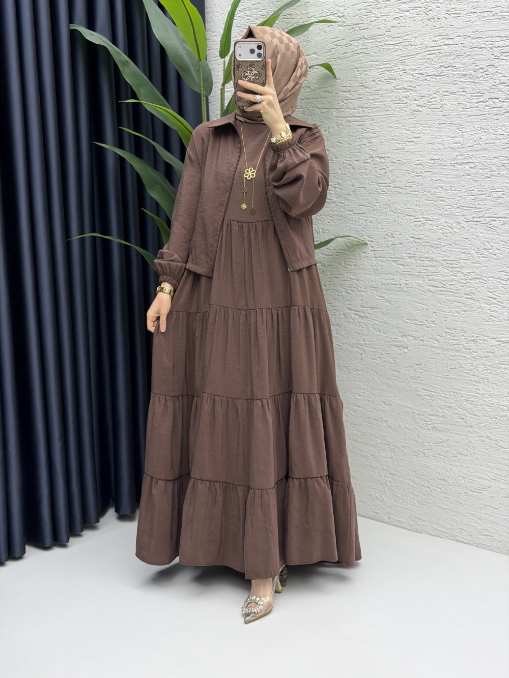 Ahu Elbise Tesettür Giyim Sütlü Kahve