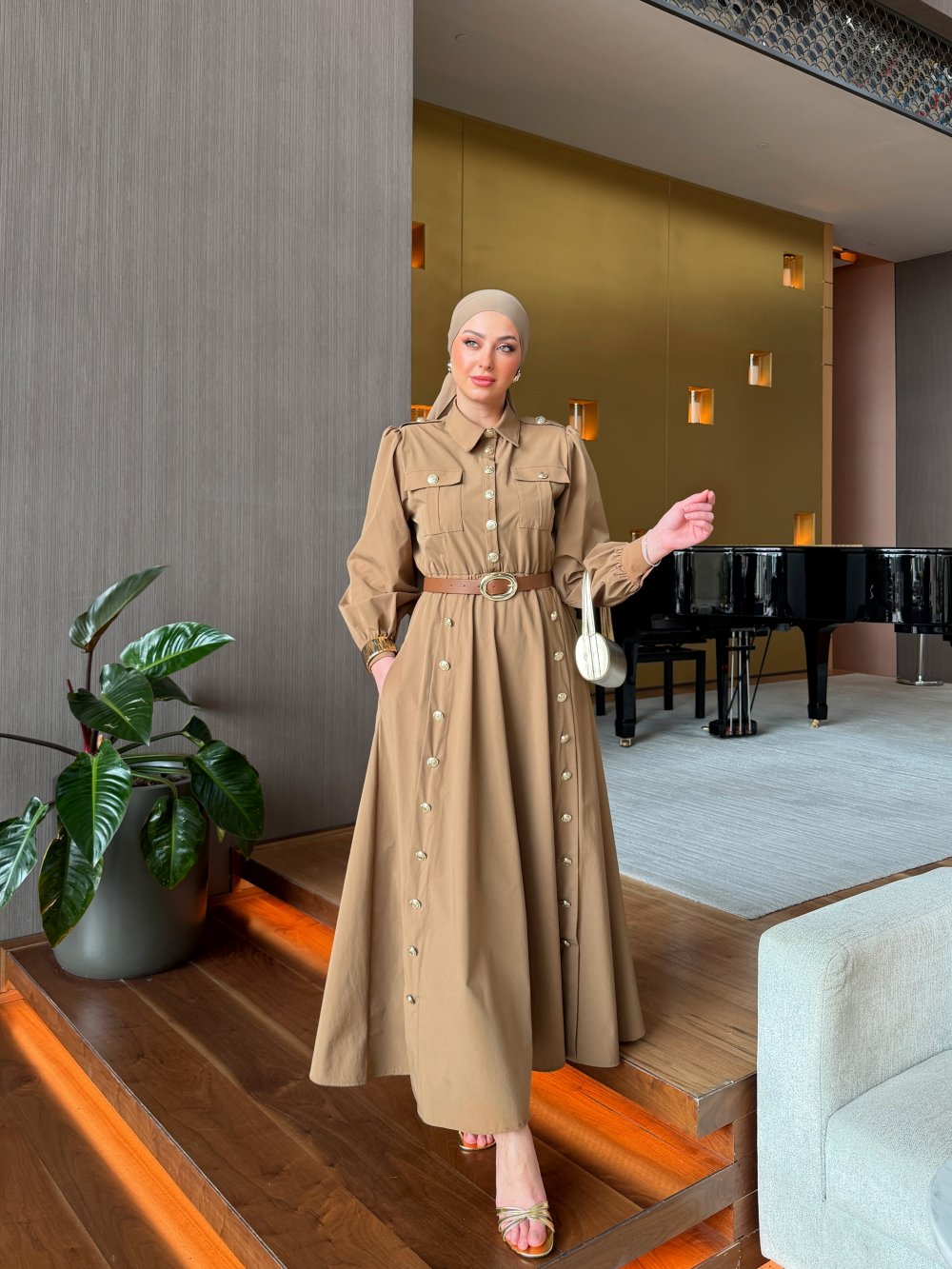 Elbise Yarıya Kadar Düğmelidir.
