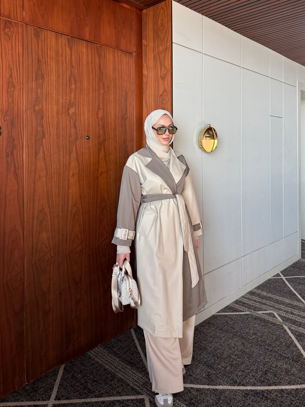 Trençkot İki Farklı Kumaş Detaylıdır.