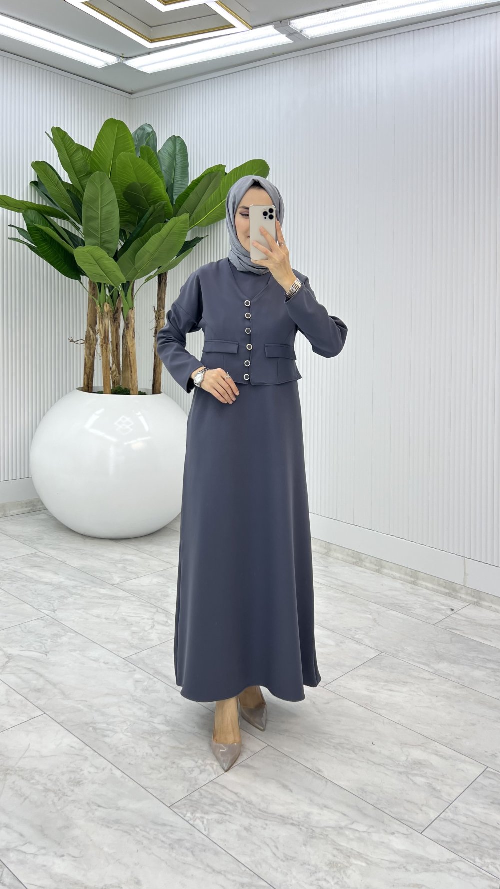 Antrasit Hasibe Elbise Takım Tesettür Giyim