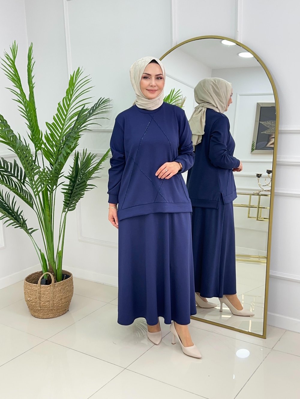 ASMİN ETEKLİ TAKIM - LACİVERT