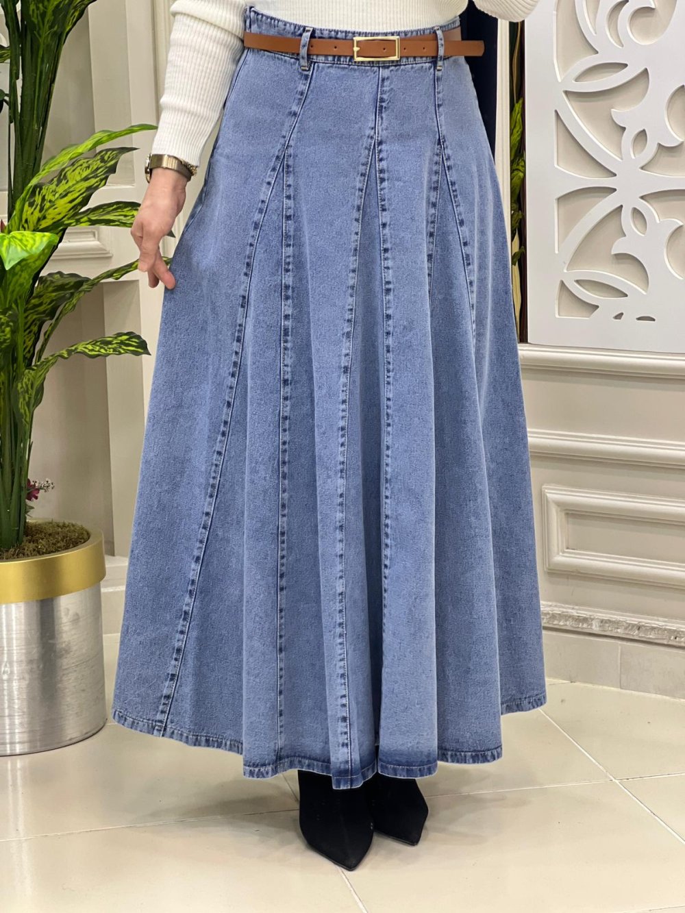 Ayla Kot Etek Buluz Takım Şik ve zarif hanımlar Ayla Etek kod.13144 kargo ücretsiz Beden 38 40 42 44 Kumaş Türü:1.kalite kot Etek boy: 95 cm Etek beli fermuarli ve kemerlidir