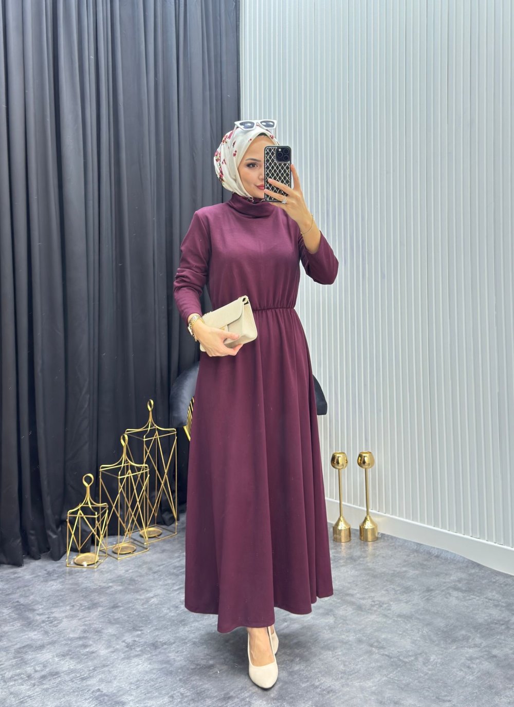 Balıkçı yaka olup elbisemizin beli büzgülüdür.