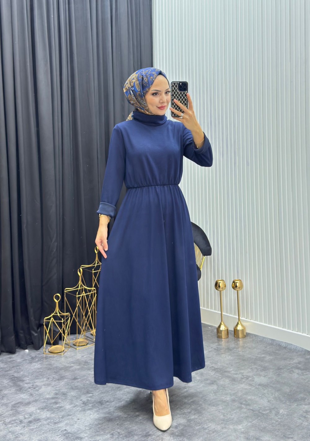Balıkçı yaka olup elbisemizin beli büzgülüdür.