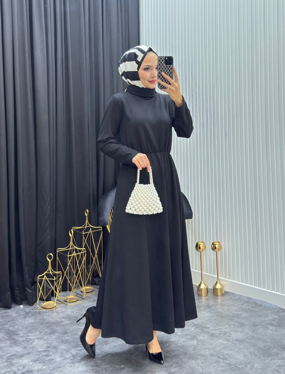 Balıkçı yaka olup elbisemizin beli büzgülüdür.