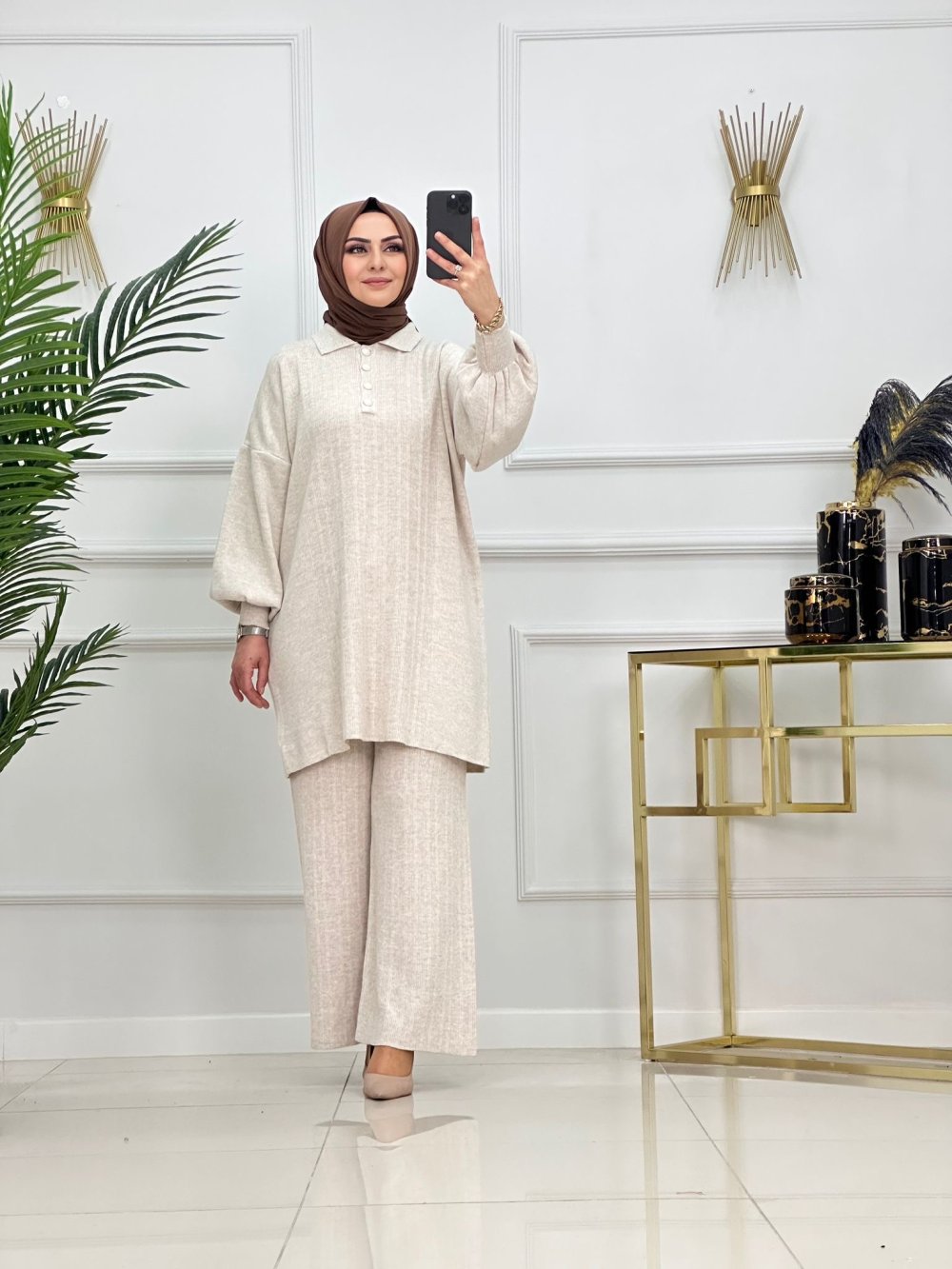 BALON KOL ZARİF TAKIM-BEJ