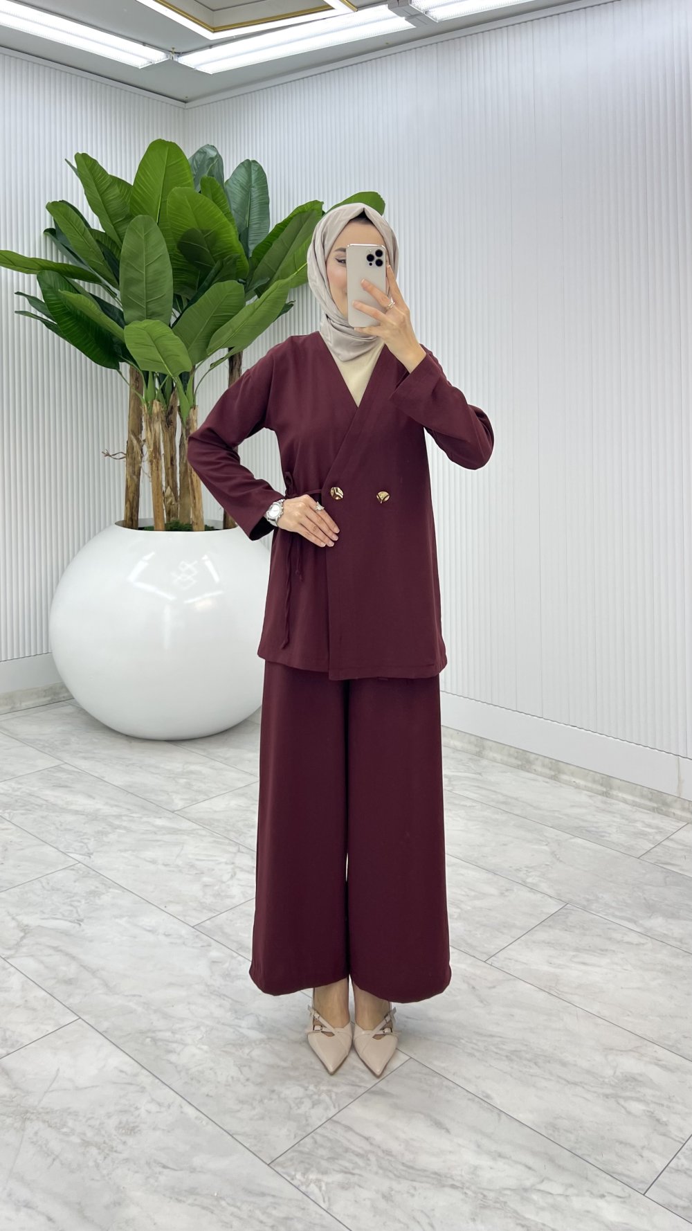 Bordo Güler Pantolonlu Takım Tesettür Giyim
