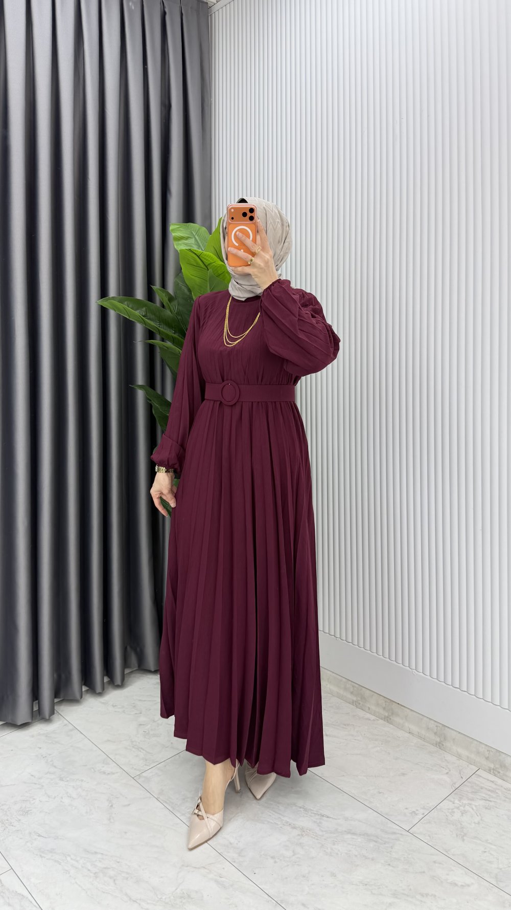 Bordo Hifa Piliseli Elbise Tesettür Giyim
