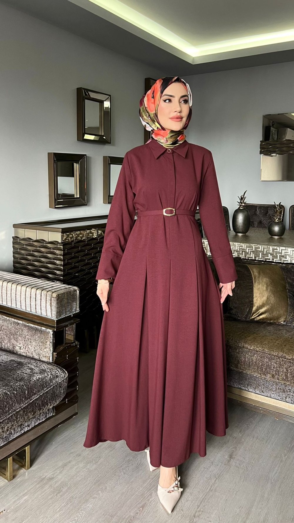 Bordo Premıum Farah Elbise Tesettür Giyim