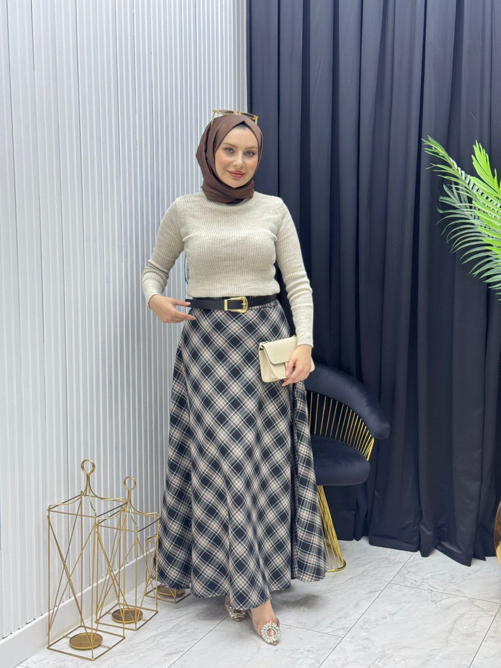 Büyük Beden Etek Vizon Vizon