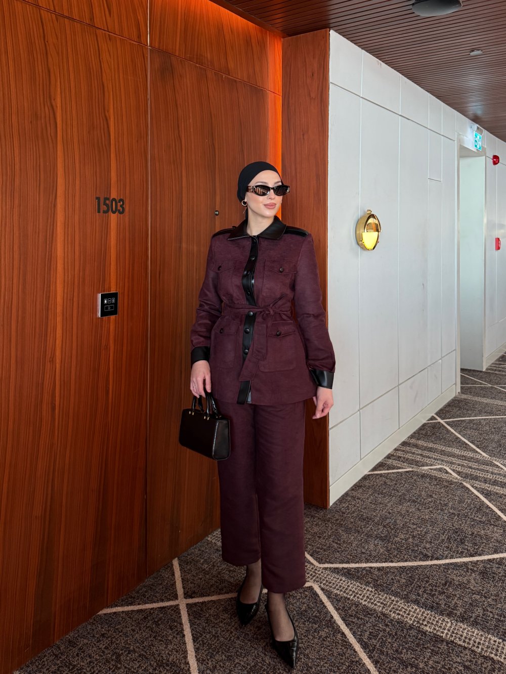 Çağla Pantolonlu Takım Bordo