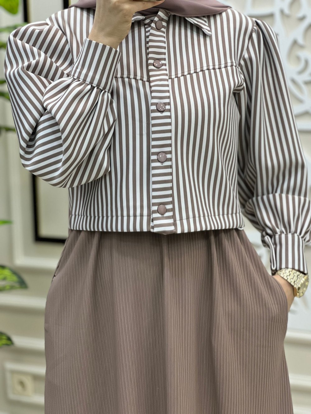 Tesettür jile Ceket takım Şik ve zarif takım elbisemiz Çizgi takım kod.13115 Elbise Beli ayarlanabilir şekilde lastikli Ve ceplidir Sıfır kol jile Fiyat kargo ücretsiz Beden 38 40 42 44 Boy 140 cm Elbise Kumaş Türü:1.fitilli burgu Ceket kumaş tok ceketlik dalgiç