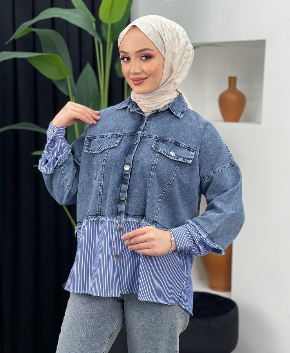 Çizgili Kot Ceket
