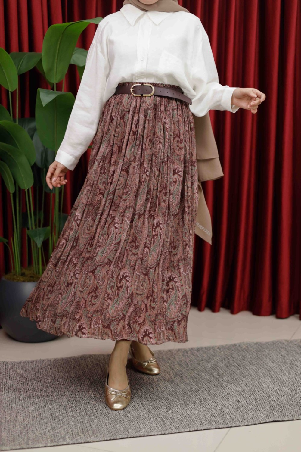 DESENLİ ETEK - BORDO