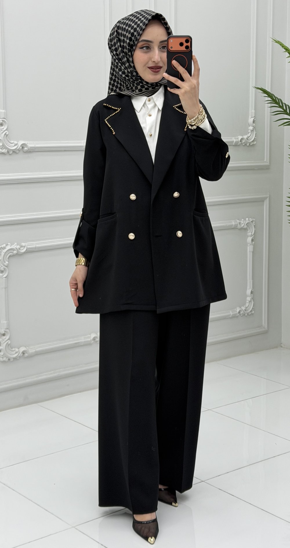 Diana Ceket Takım,hem iş hem de günlük hayatınızda rahatlıkla tercih edebileceğiniz çok yönlü bir parçadır. Şıklığı konforla buluşturan bu tasarım, sezonun en gözde modellerinden biri olacak!
