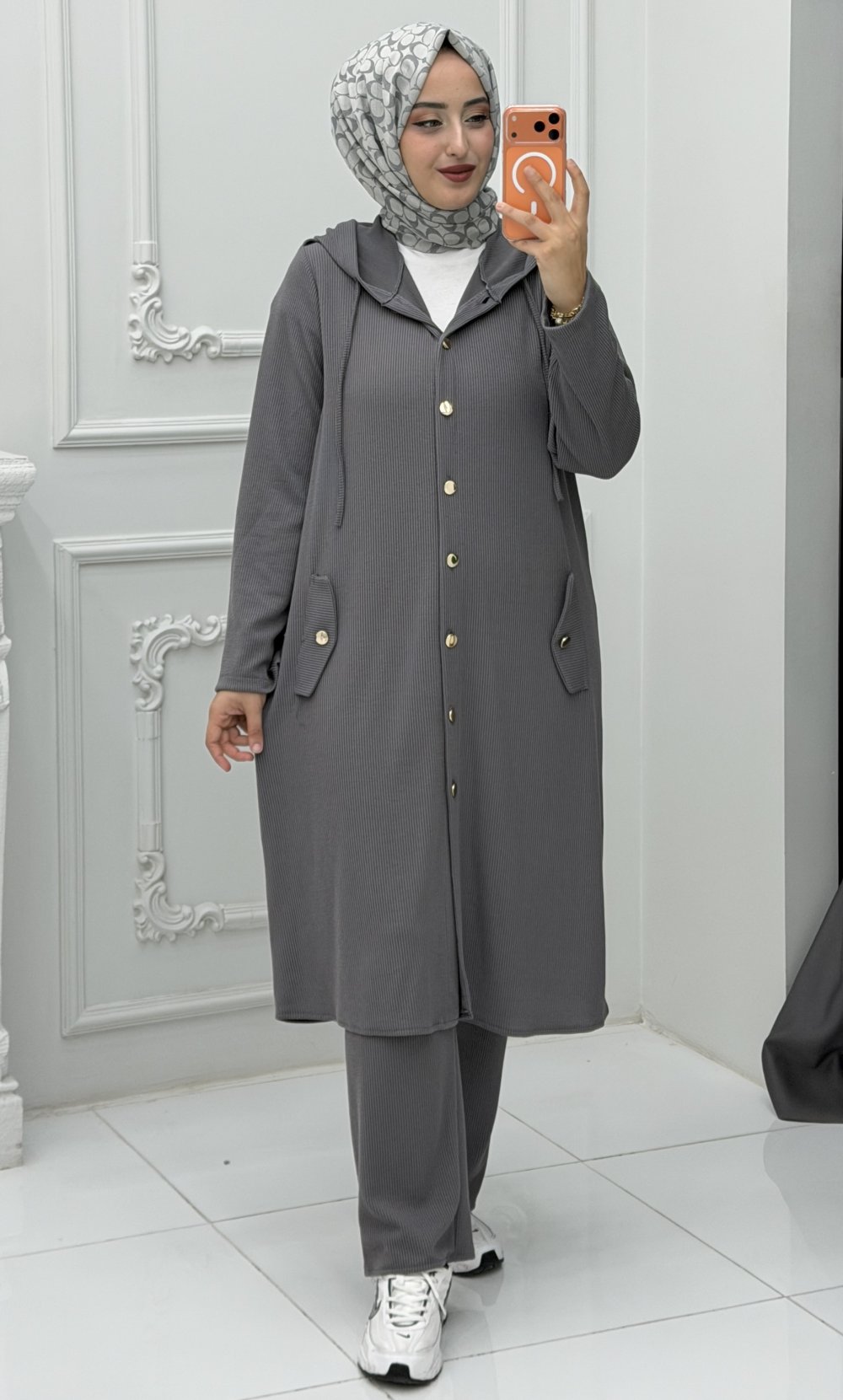 Rahatlık ve şıklığı bir araya getiren Eflin Takım, sade ama zarif duruşuyla günlük kombinlerinizi güçlendiriyor. Yumuşak kumaşı ve esnek yapısı sayesinde gün boyu konfor sunarken, modern kesimiyle stil sahibi bir görünüm yaratır.