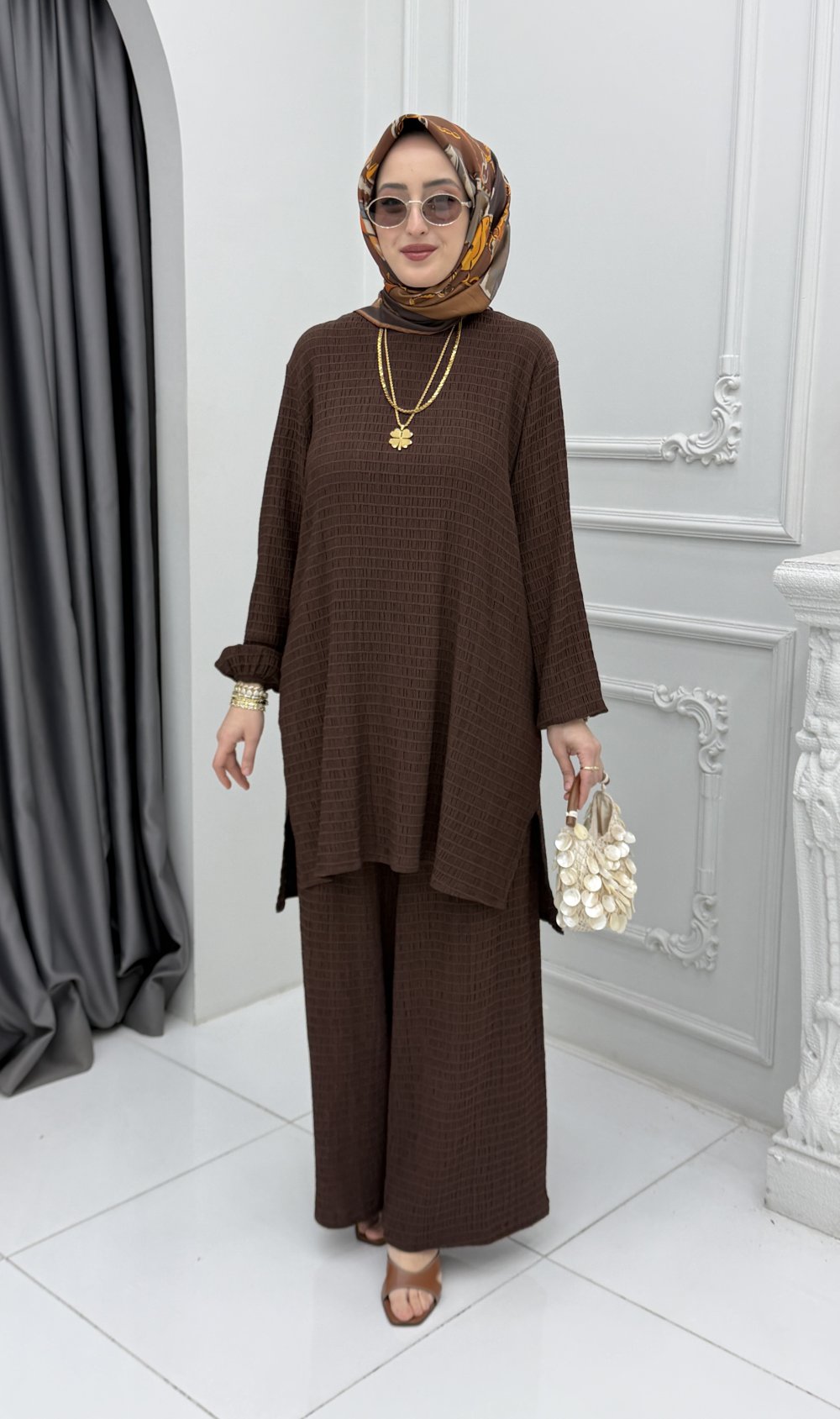 Rahatlık ve şıklığı bir araya getiren Ekin Takım, sade ama zarif duruşuyla günlük kombinlerinizi güçlendiriyor. Yumuşak kumaşı sayesinde gün boyu konfor sunarken, modern kesimiyle stil sahibi bir görünüm yaratır.