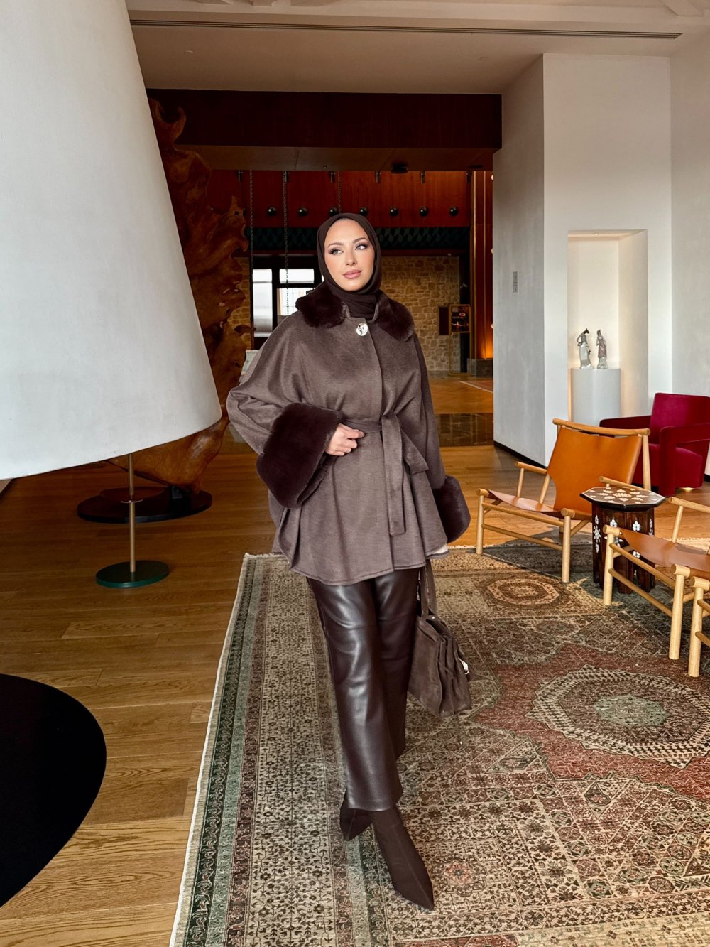 KabanınYakası ve Kolları Kürk Detaylıdır.