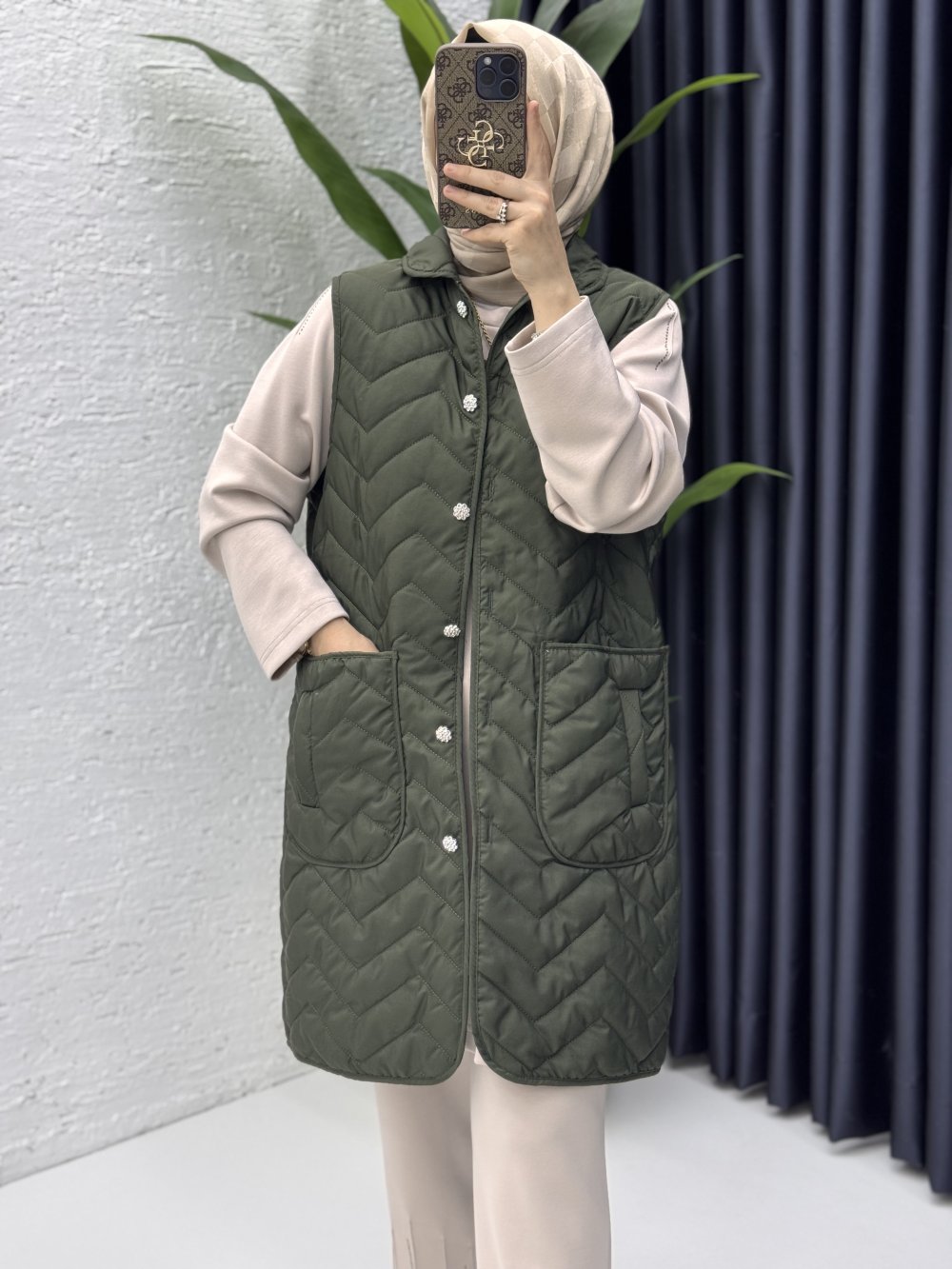 Esra Yelek Tesettür Giyim Haki