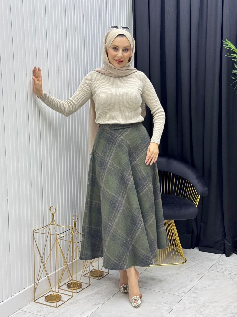 Ürünün Kumaşı:Etek 1. Sınıf kaşe kumaştan imal edilmiştir kazak triko kumaştan imal edilmiştir