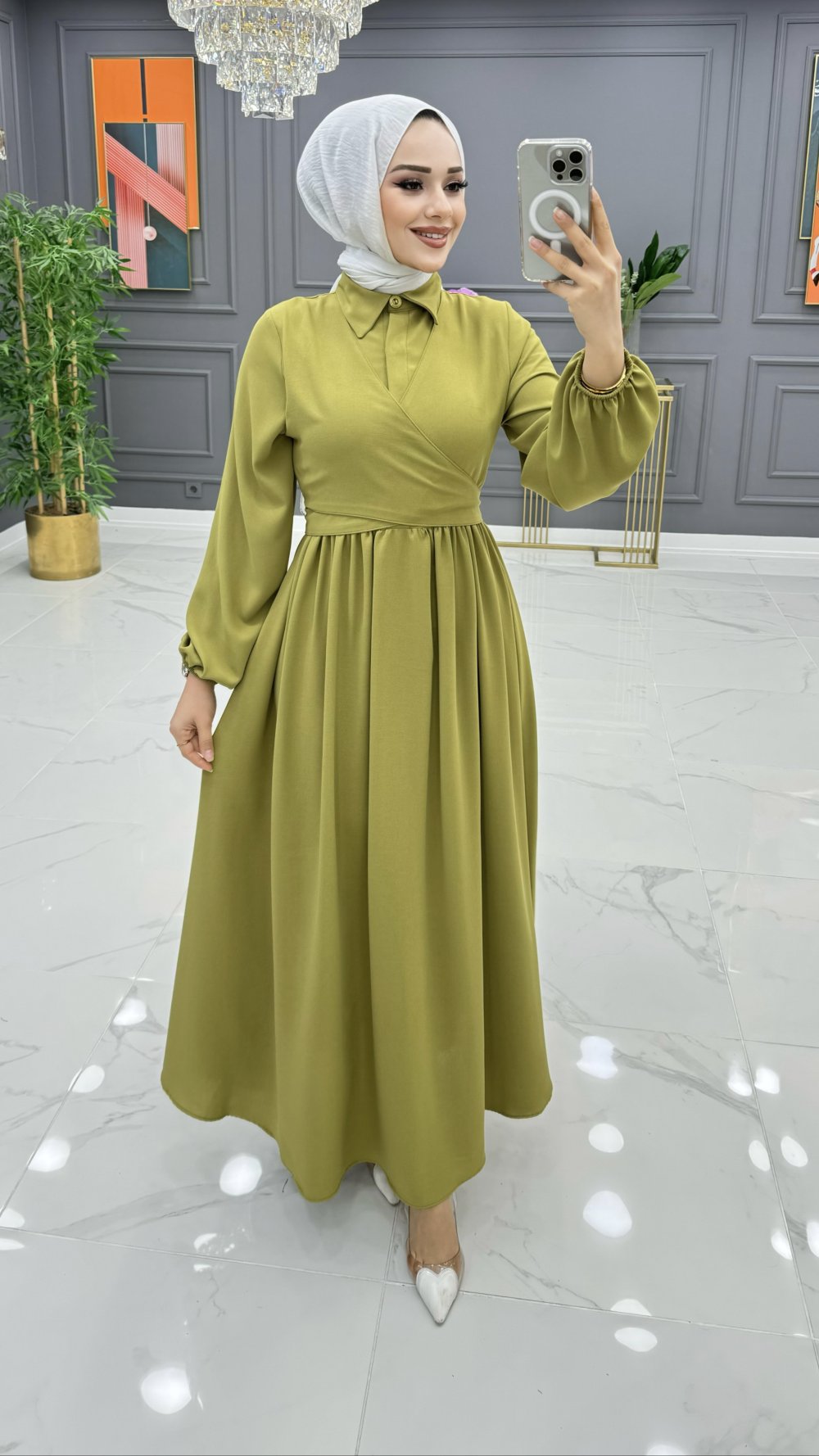 Tutku Elbise Takım Yağ Yeşili