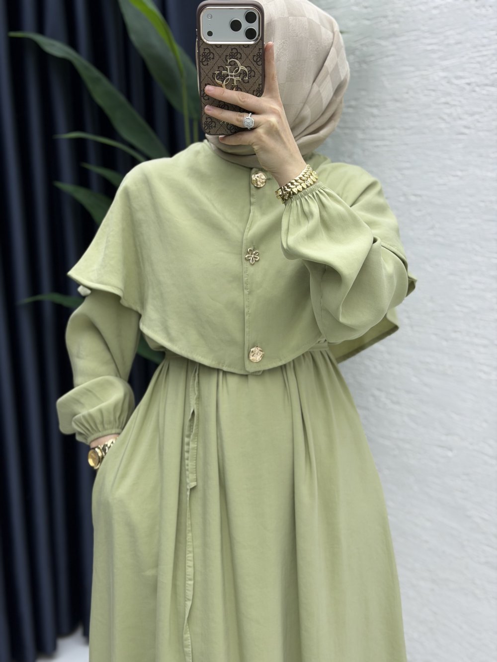 Ferda Elbise Tesettür Giyim Çağla Yeşil