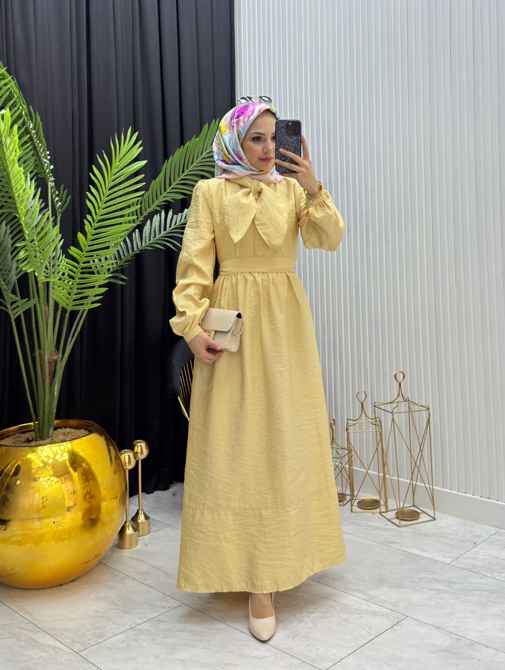 Fularlı Elbise Sarı Sarı