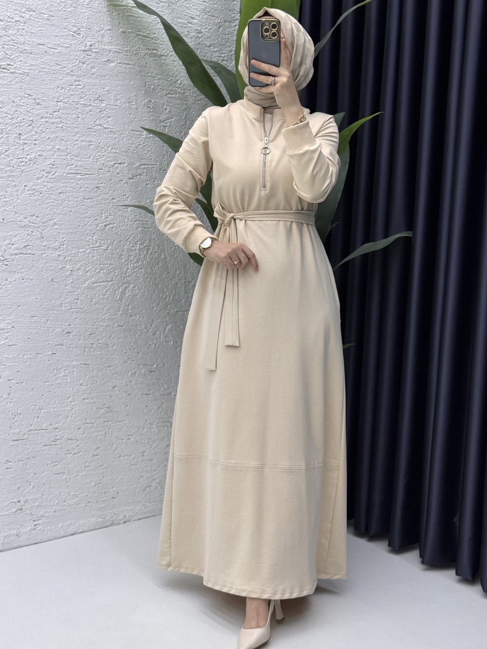Fulya Elbise Tesettür Giyim Taş Rengi