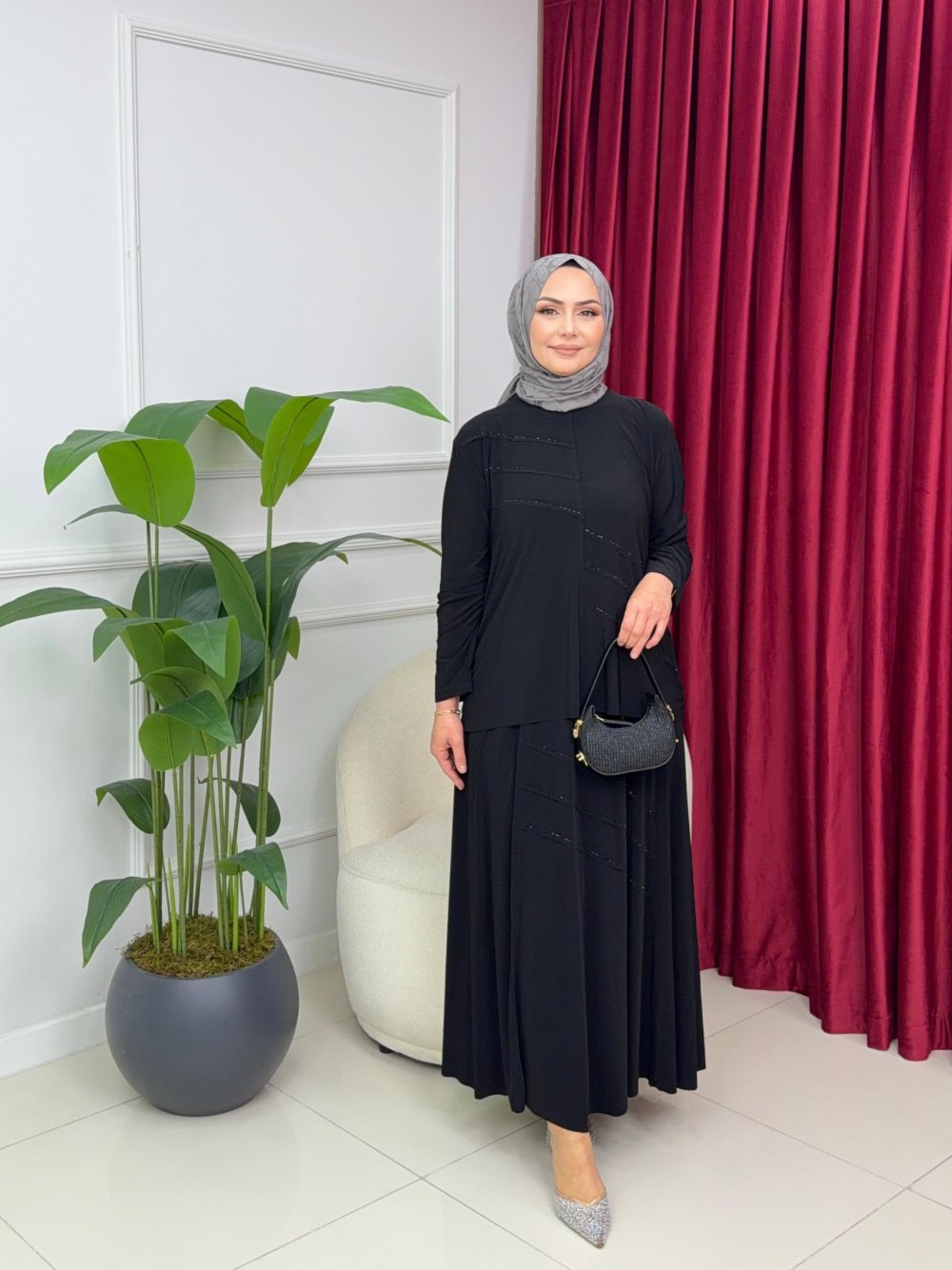 GÜLBEN ETEKLİ TAKIM - SİYAH