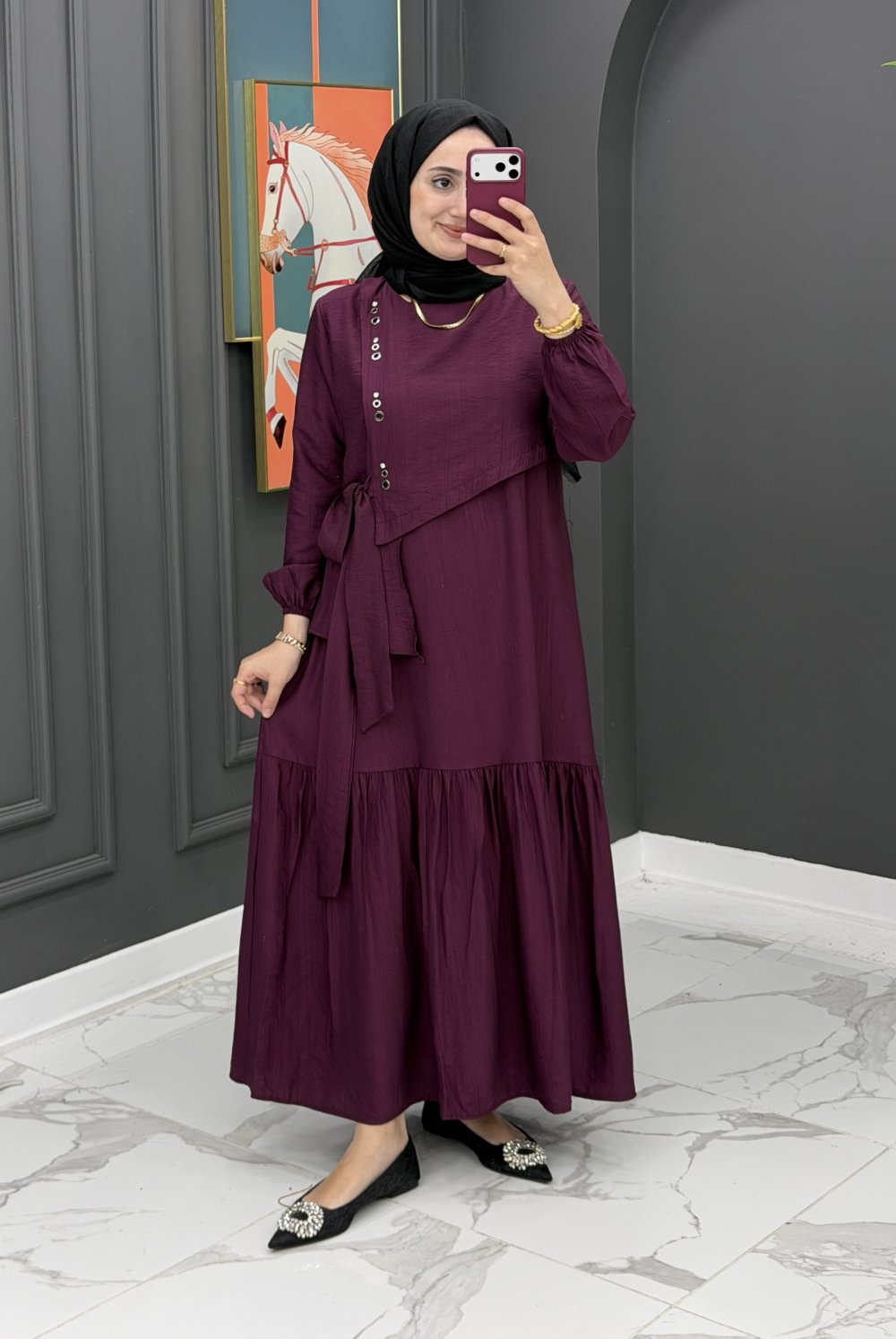 Gülseli elbise mürdüm
