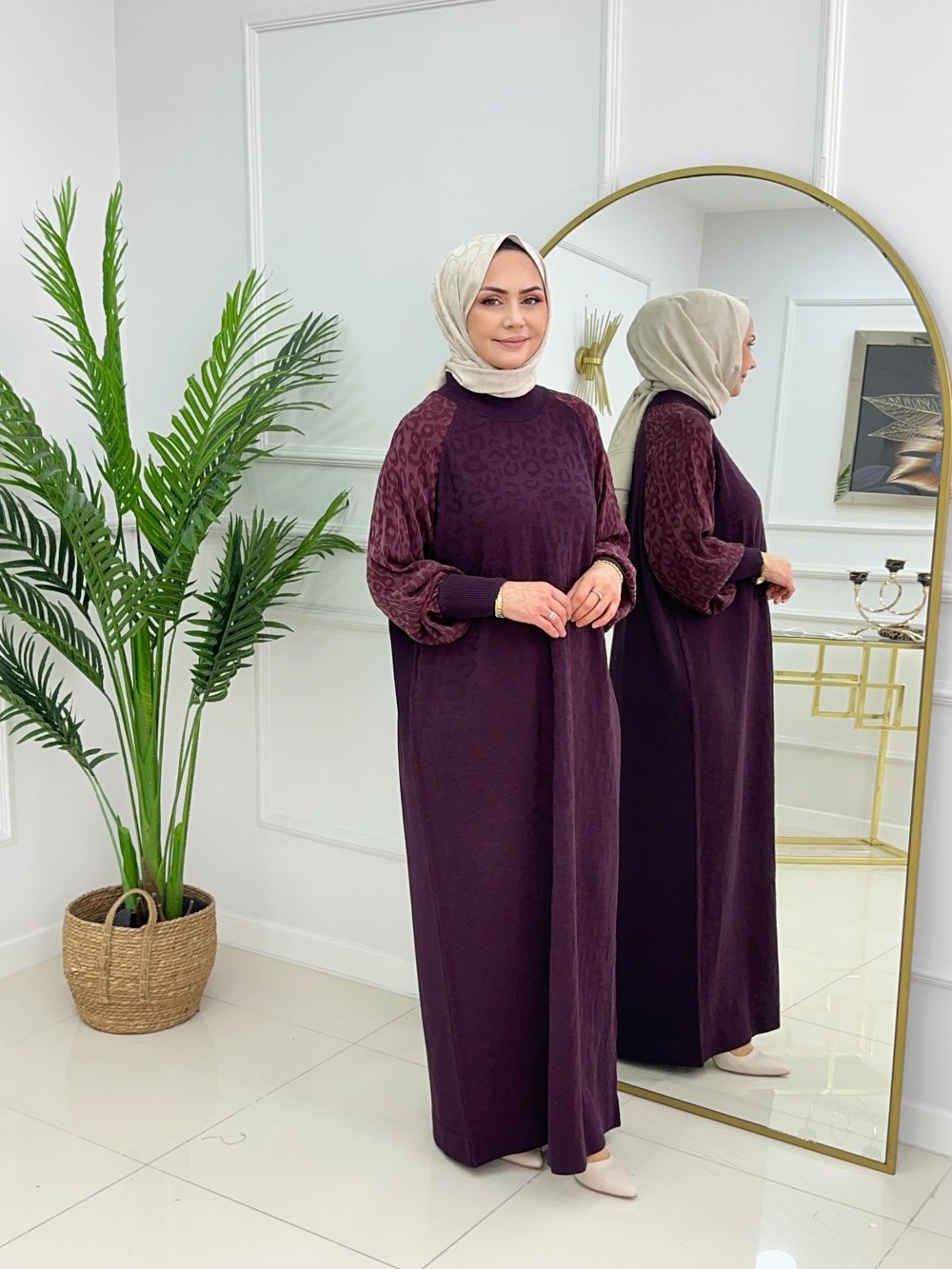 HAVVA MERSERİZE ELBİSE - MÜRDÜM