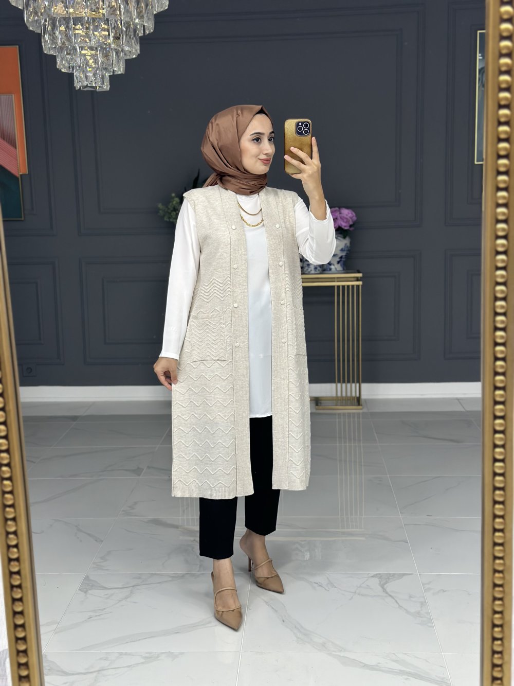 heidi triko uzun yelek - bej