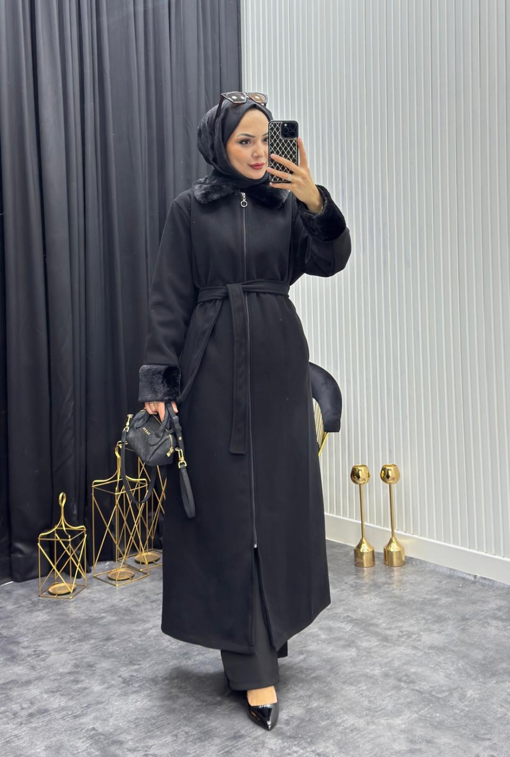 ️Kürklü kaban Siyah Siyah