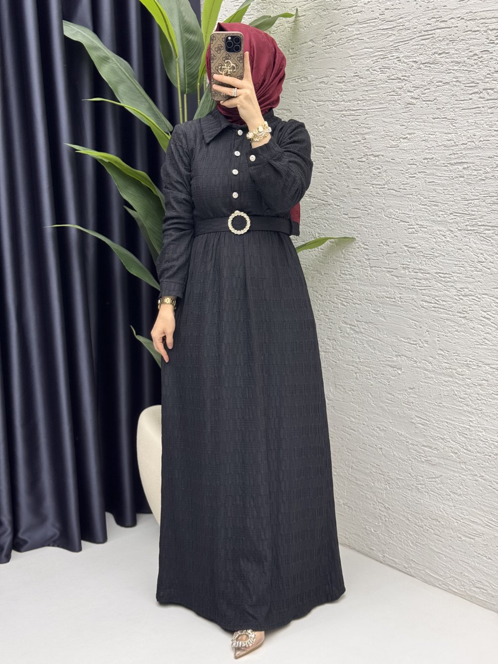 Kemer detaylı elbisemiz stokta