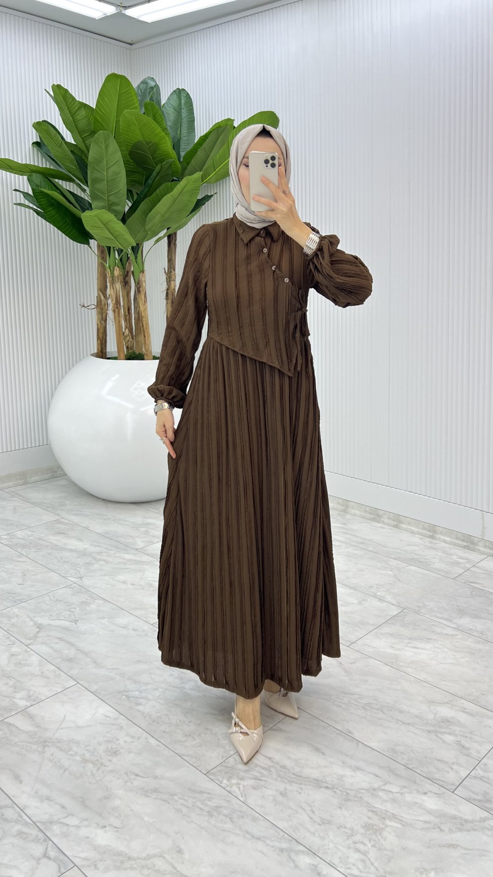 Kahverengi Şehnaz Elbise Tesettür Giyim