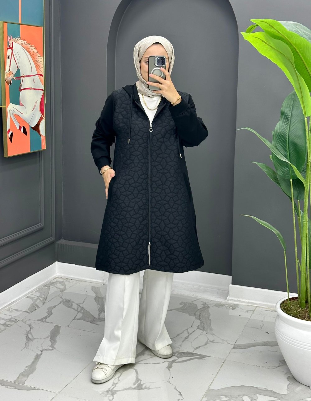 Kapitone Kap - Siyah