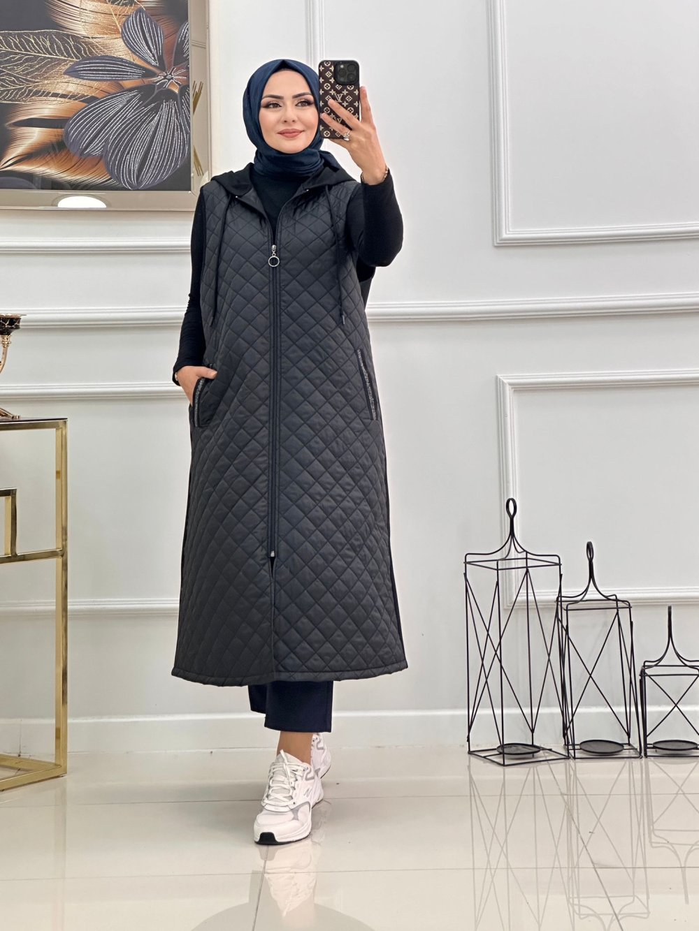 Kapitone yelek -Siyah