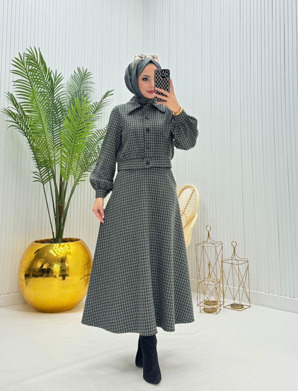 Ürünün Beden Aralığı ;36-38-40-42-44 Ürünün Kumaşı ;Kışlık örme kumaştan imal edilmiştir Ürünün Boyu ;Tunik 44cm Etek:88cm Ürün crop ve etek olmak üzere iki parçadan oluşmaktadır. Corp önü boydan düğmeli, kol manşetleri düğmelidir. Etek beli lastikli cepli ve çan modeldir Mankenin giydiği beden 38 bedendir Kışlık kullanima uygundur Ürün renginde konsept çekimlerinden dolayı ton farklılığı olabilir