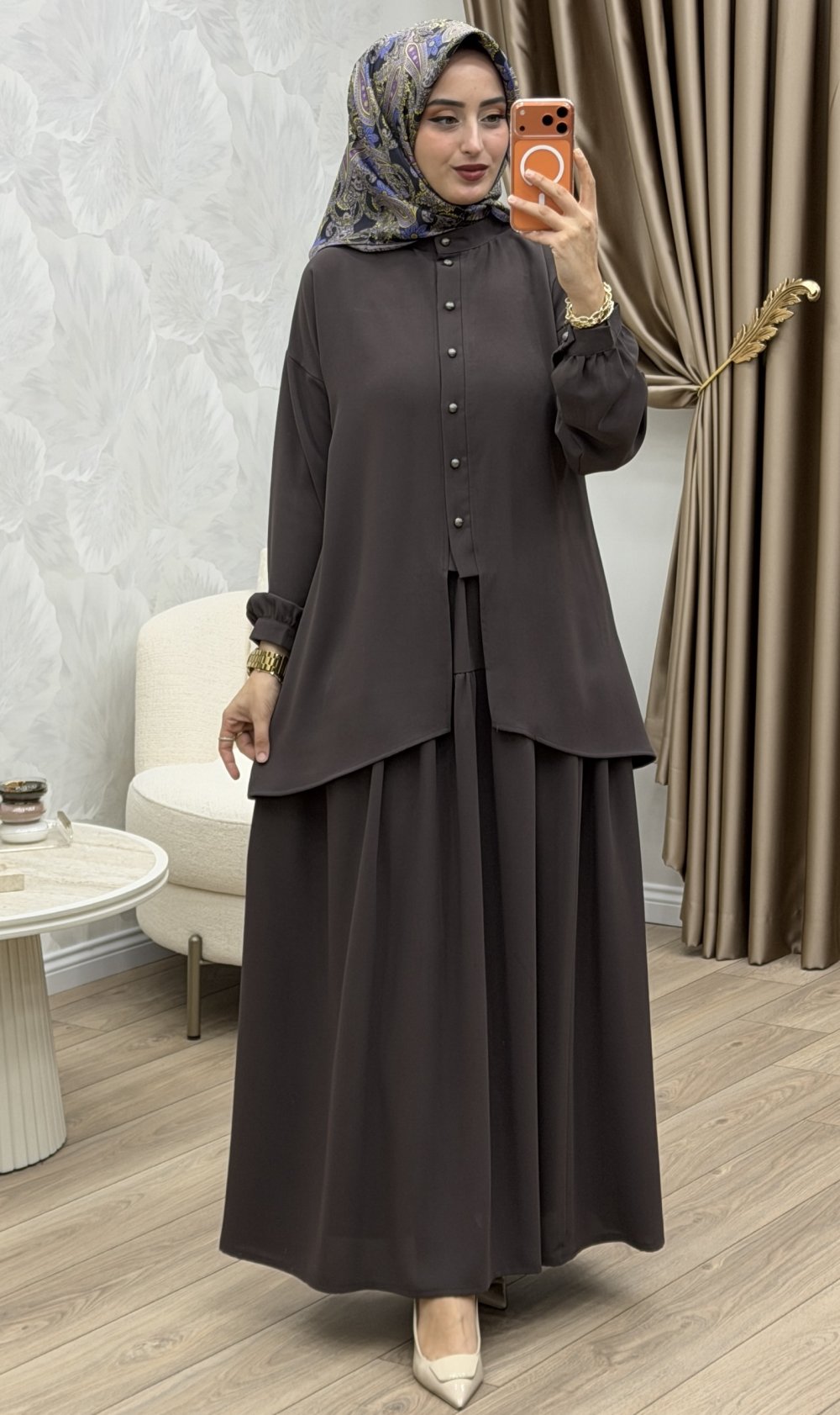 Rahatlık ve şıklığı bir araya getiren Laçin Etek Takım,sade ama zarif duruşuyla günlük kombinlerinizi güçlendiriyor. Yumuşak kumaşı ve esnek yapısı sayesinde gün boyu konfor sunarken, modern kesimiyle stil sahibi bir görünüm yaratır.
