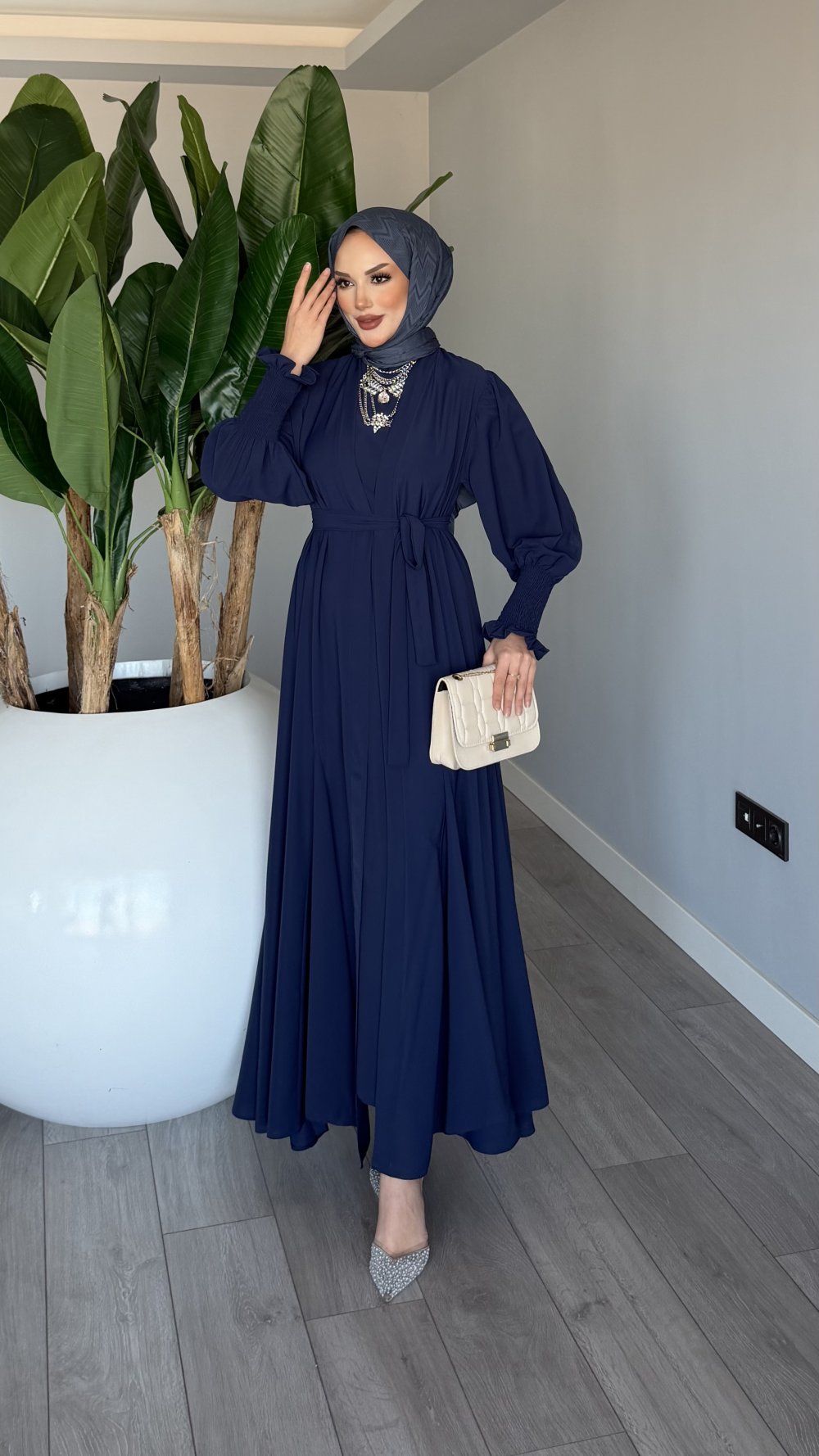 Lacivert Meşk Abaya Takım Tesettür Giyim