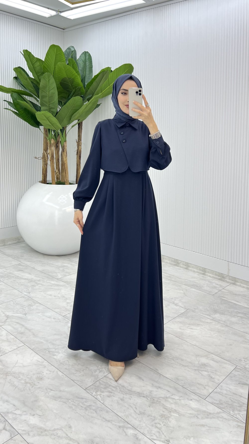 Lacivert Sevgi Yelekli Elbise Takım Tesettür Giyim