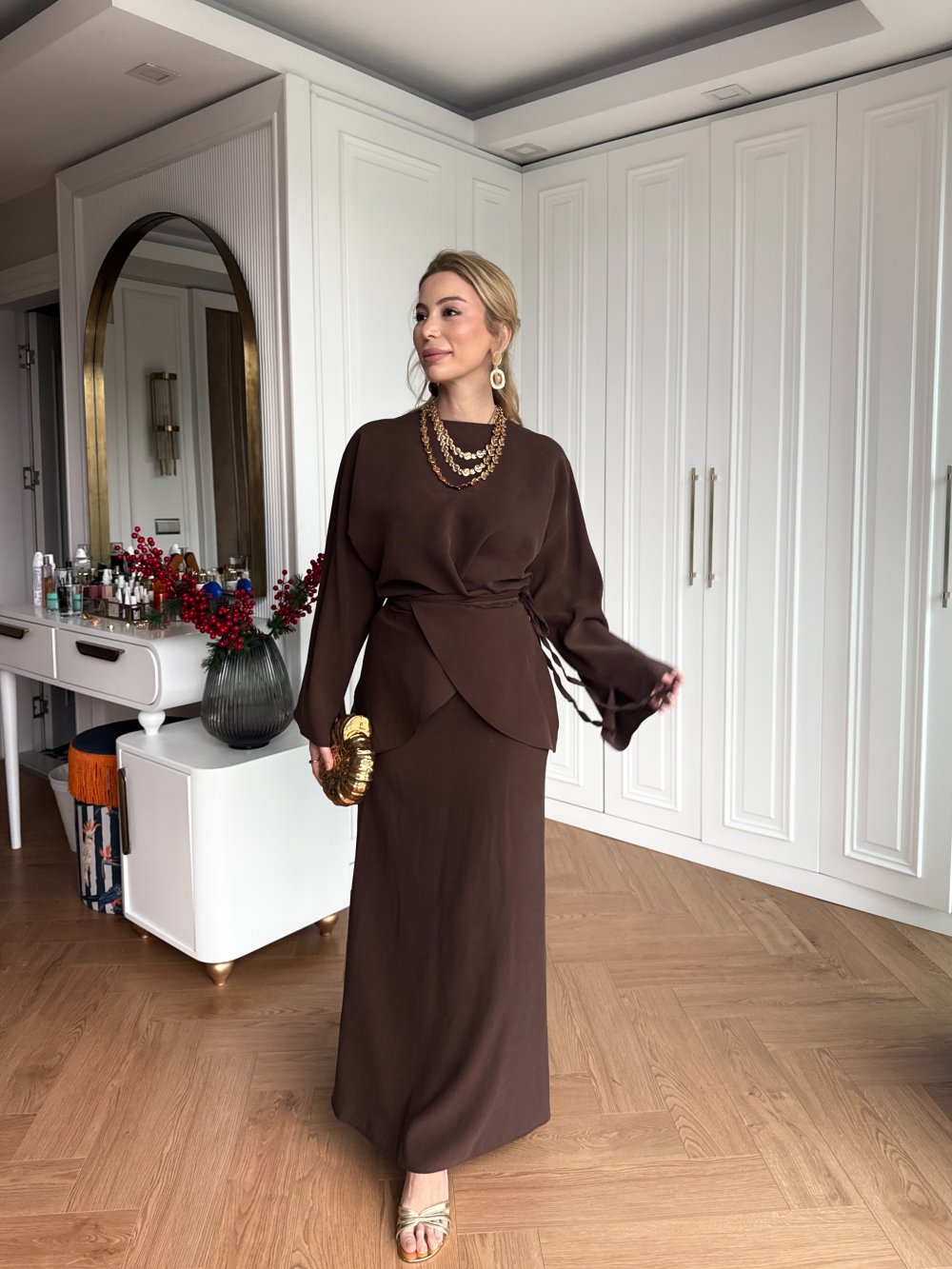Takım Tunik  Etek Ucu Aimetrik Bağlama Detaylıdır.