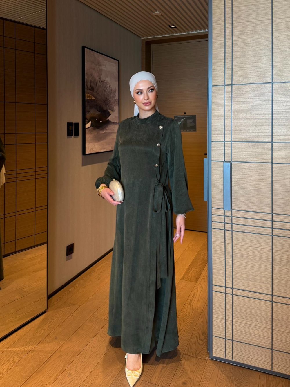 Ürün Sol Yakasında Düğme Detayı ve Yandan Kendinden Bağlama Detaylıdır