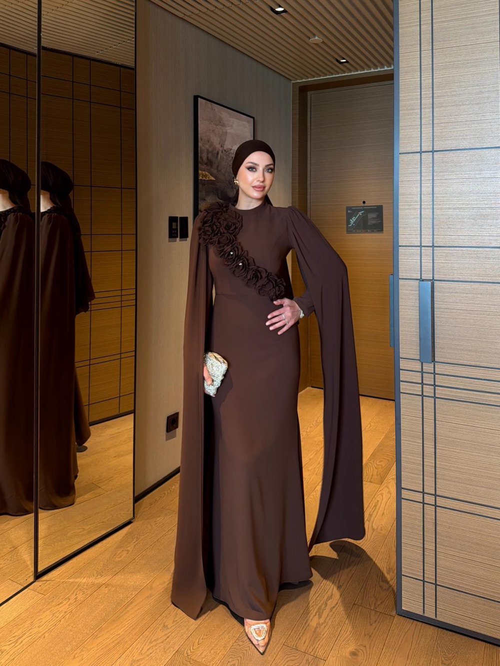 Kolları Pelerin ve Ön Yakası Gül Detaylıdır