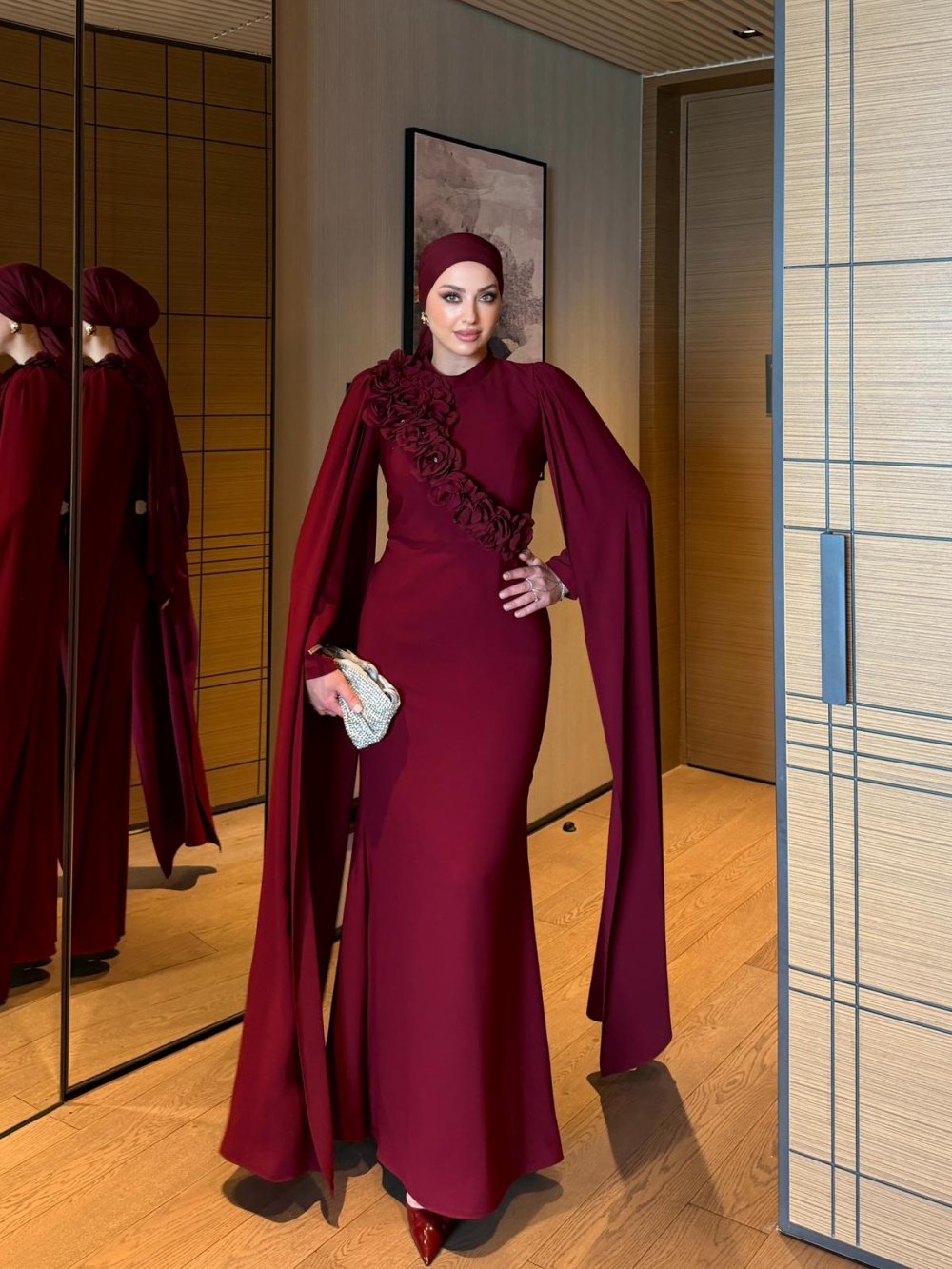 Kolları Pelerin ve Ön Yakası Gül Detaylıdır