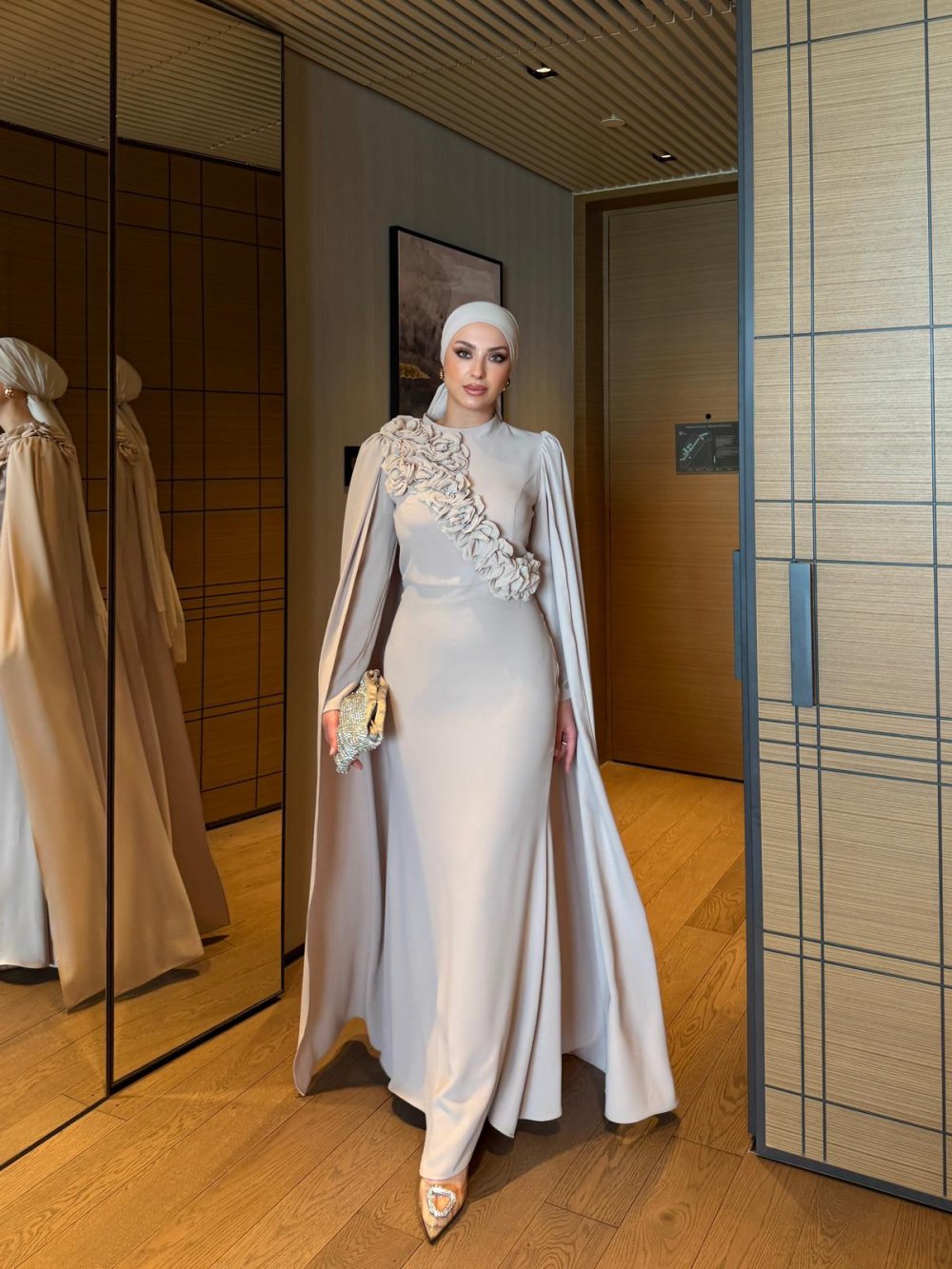 Kolları Pelerin ve Ön Yakası Gül Detaylıdır
