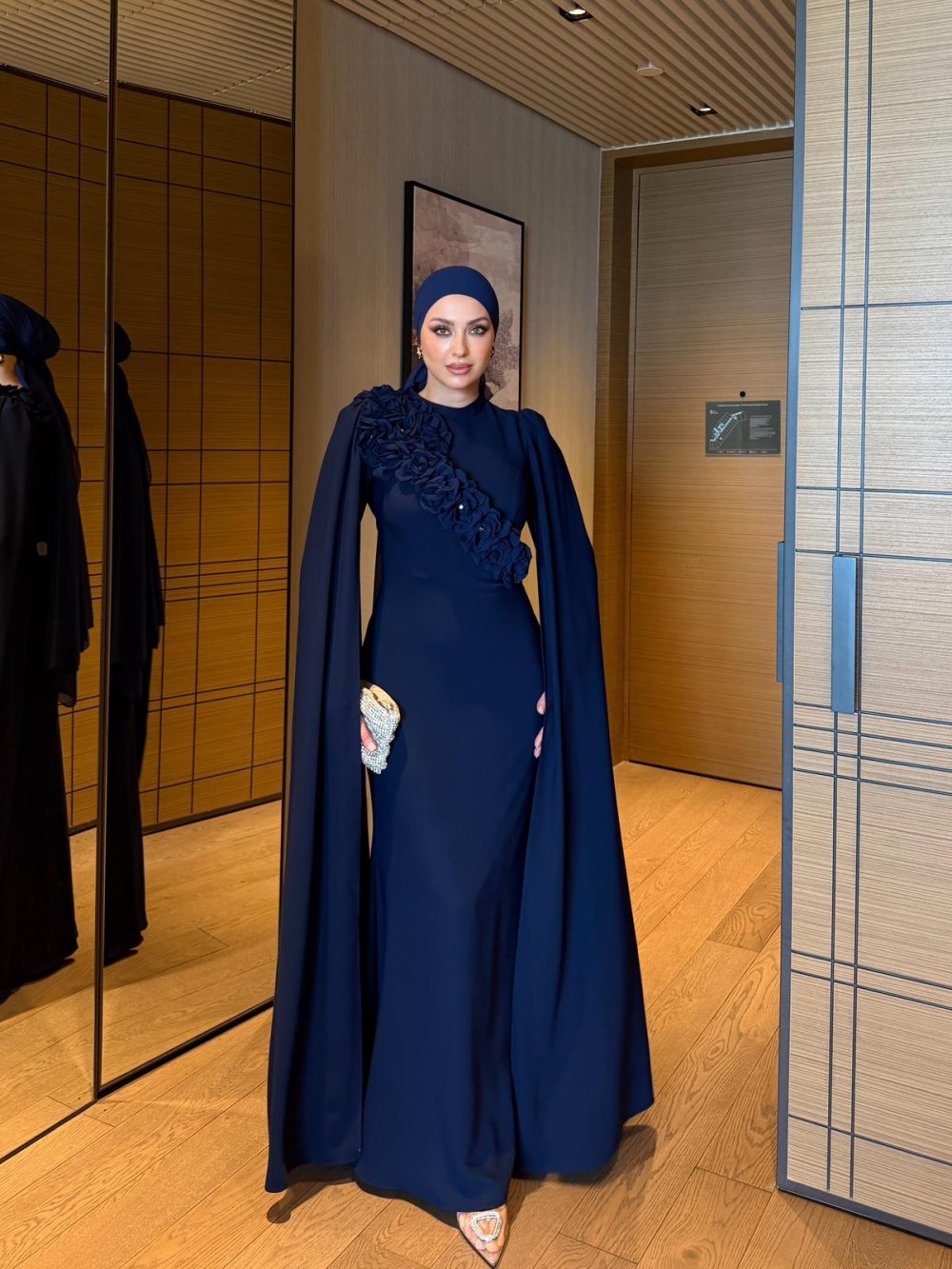 Kolları Pelerin ve Ön Yakası Gül Detaylıdır