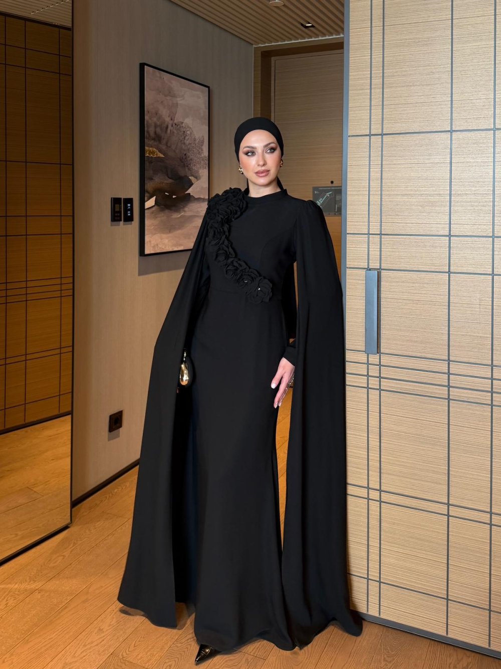 Kolları Pelerin ve Ön Yakası Gül Detaylıdır