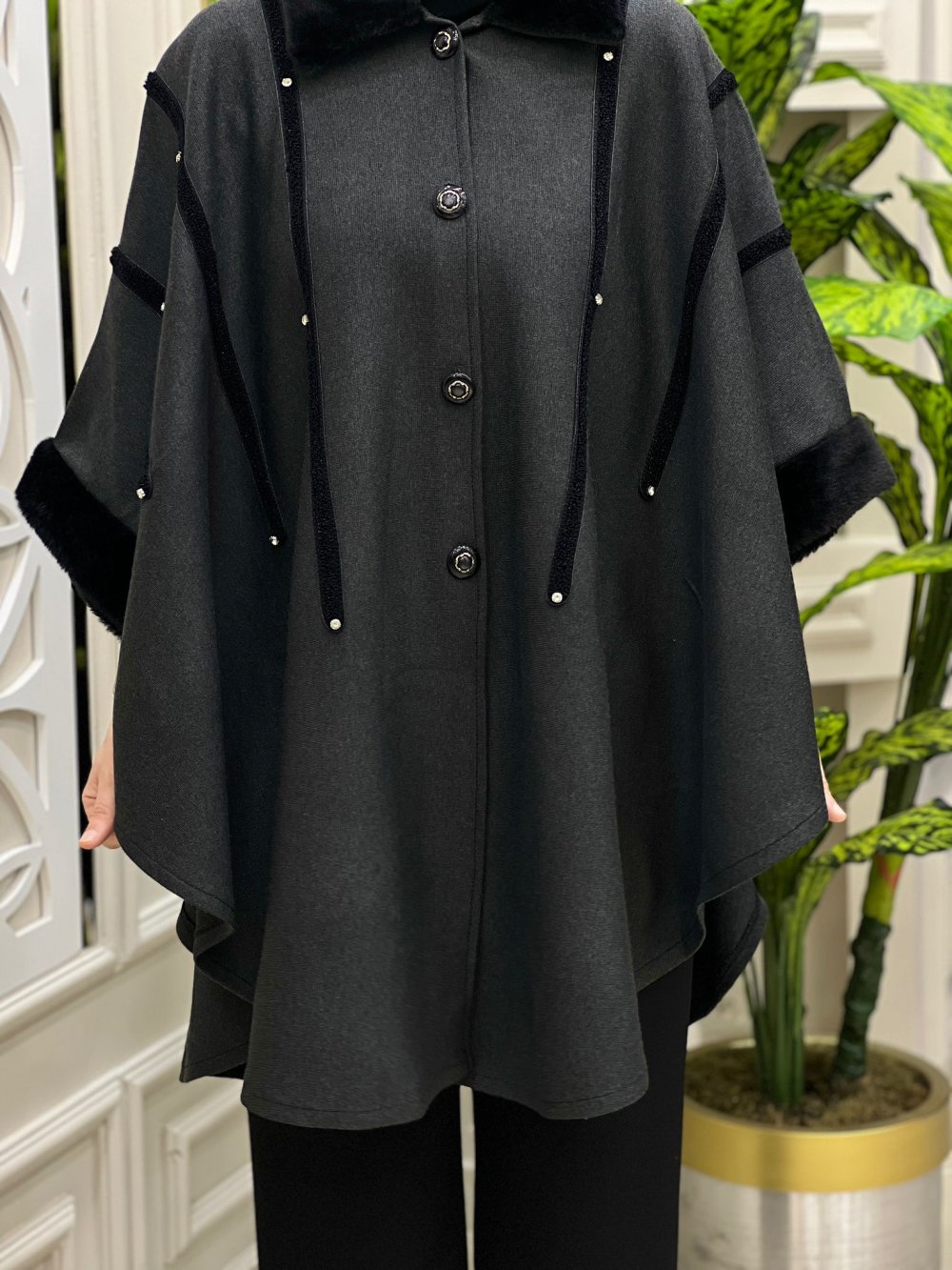 Kürk Detaylı Pançomuz 52 Bedene kadar uyumlu stoklarda Kod Panço: 13131 Taş detaylı ve düğmelidir KUMAŞ :1.Sınıf triko kumaş esnektir BEDEN : 38/52uyumlu standart BOY 90.93cm FİYAT Kargo ücretsiz